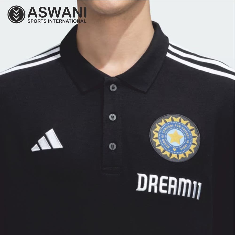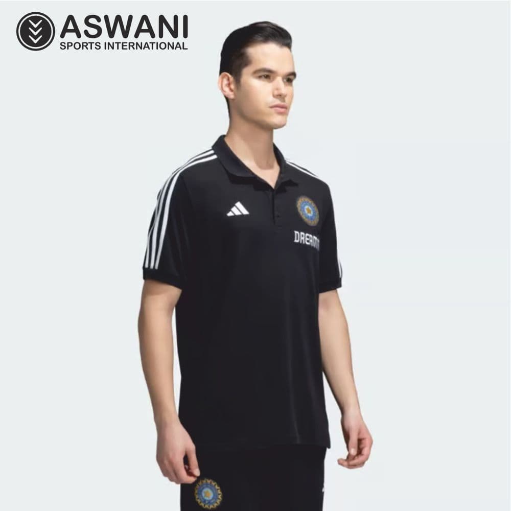 adidas India Cricket Travel Polo, Player Edition Shirt 2023-2024, Black