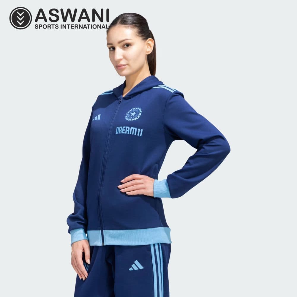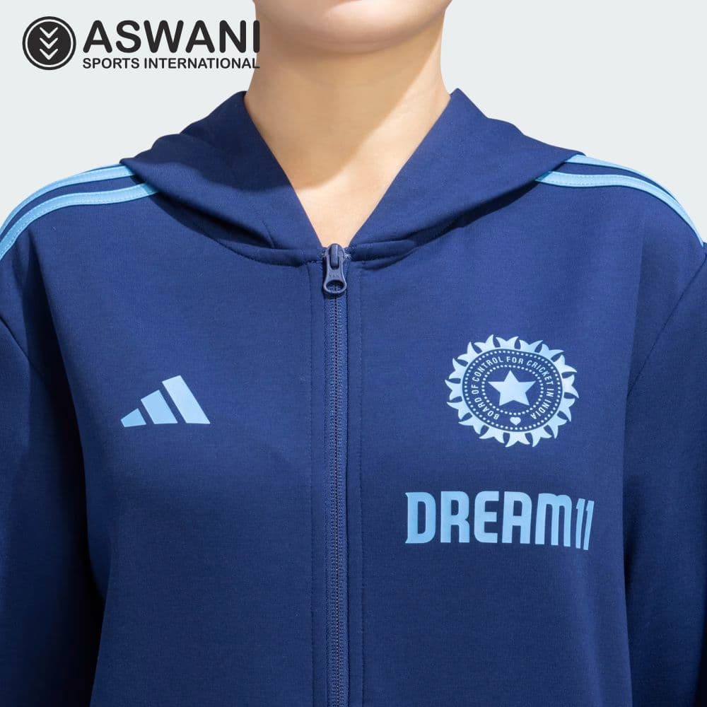 adidas India Cricket Travel Upper/Hooded Jacket, Womens Player Edition 2025, Blue