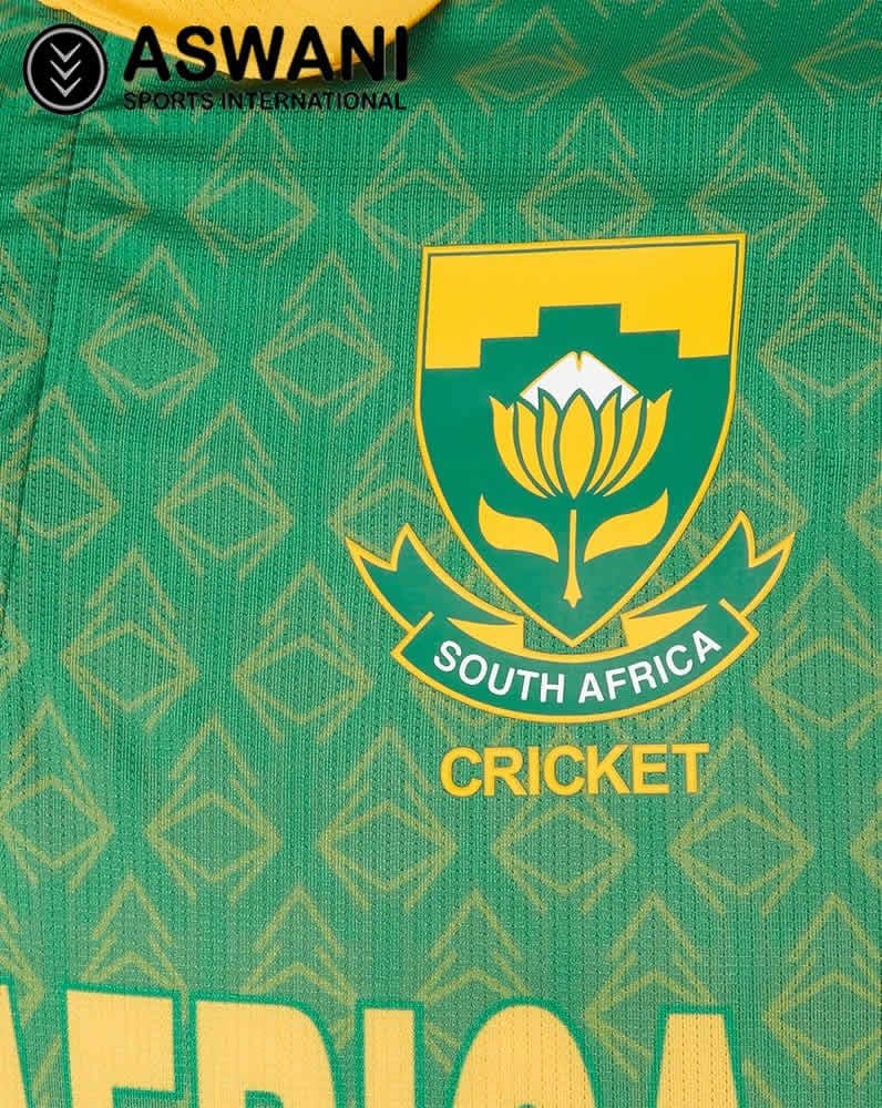 The ODI shirt of the Proteas, designed with a striking yellow and green geometric pattern. Crafted from lightweight, aerated fabric that is cut to move with the body in all actions.
